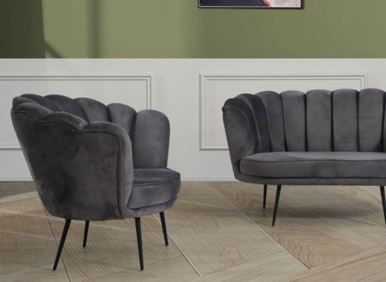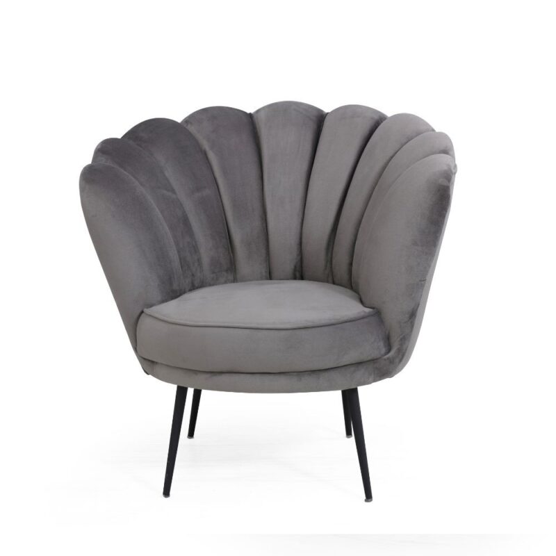 Poltrona a conchiglia Orel in velluto grigio fumè