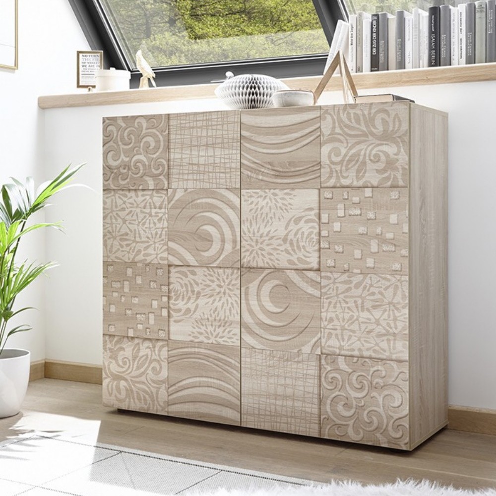 Madia a 2 ante, moderna e di design. La madia è serigrafata e in finitura rovere samoa.