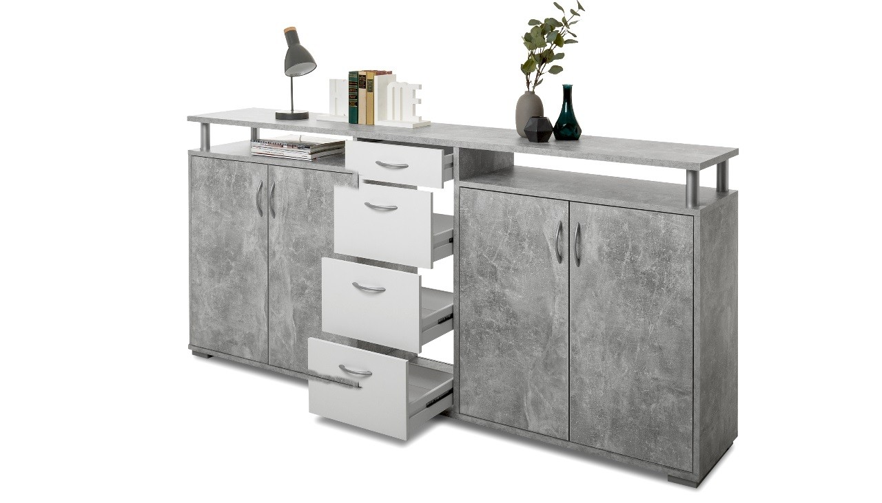 Credenza Maximo 4 ante e 4 cassetti cemento
