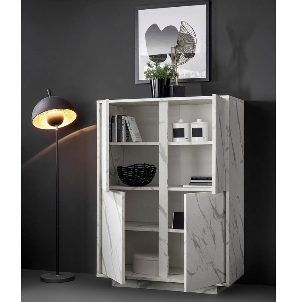 Credenza 4 ante effetto marmo bianco Rock 92x43x145h