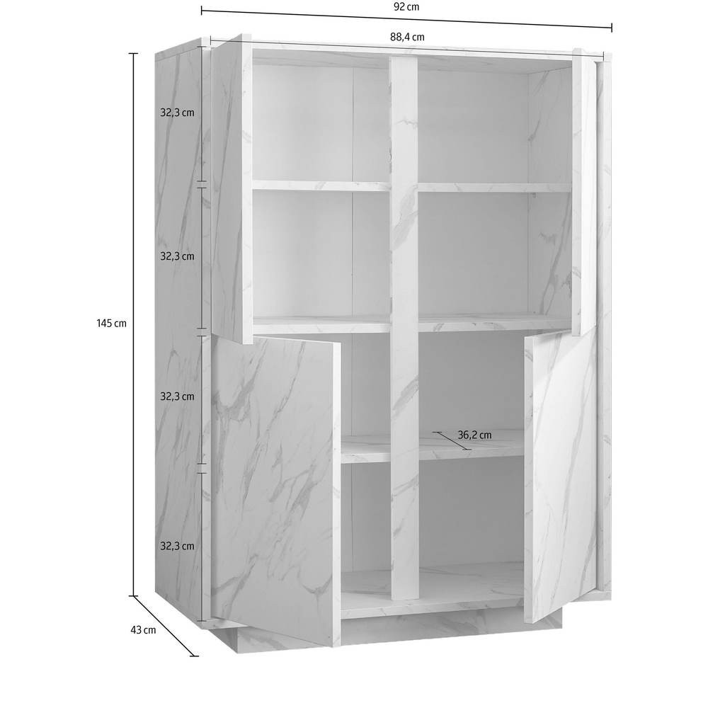 Credenza Rock 4 ante effetto marmo bianco 92x43x145h
