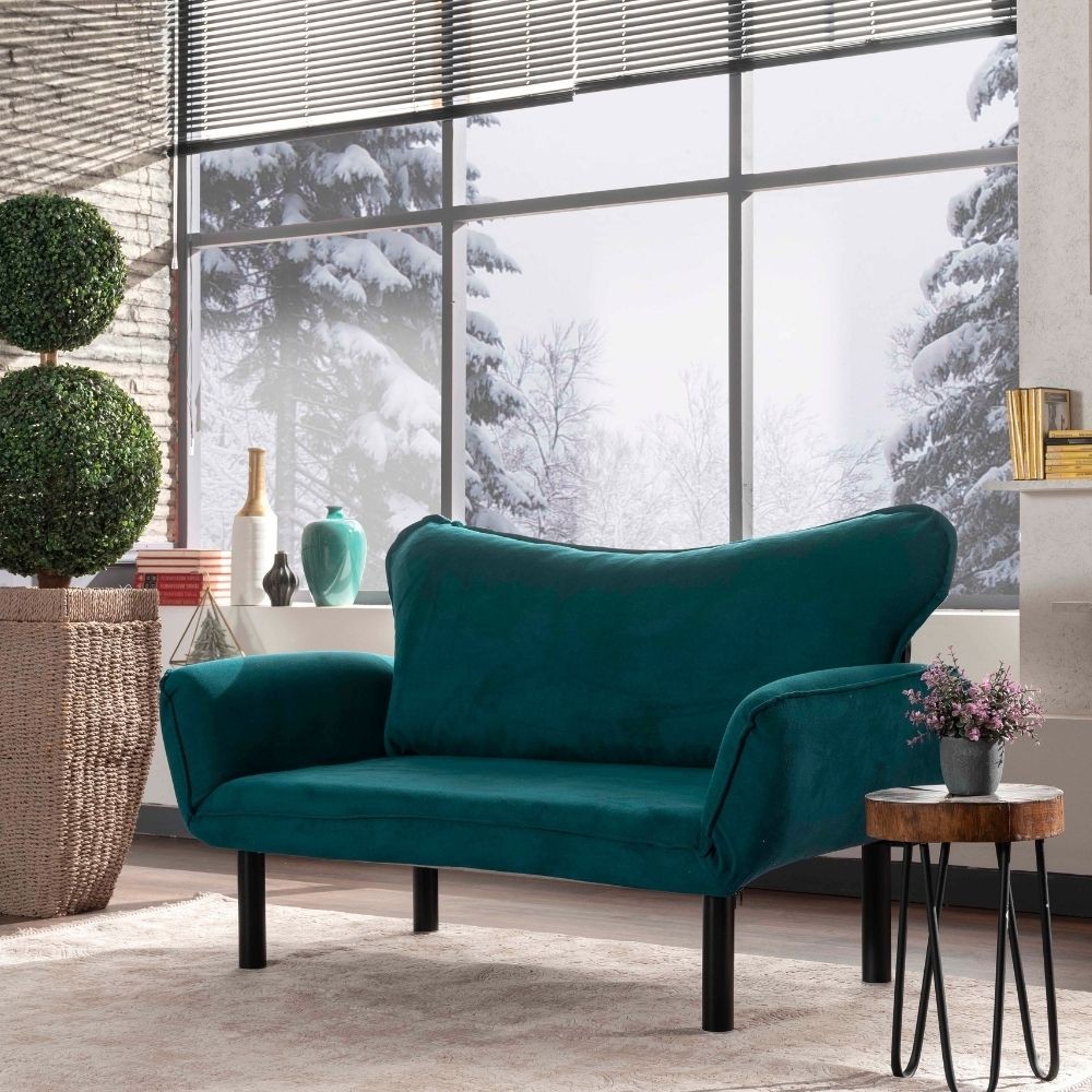 Divano Chatto verde petrolio 2 posti con braccioli reclinabili