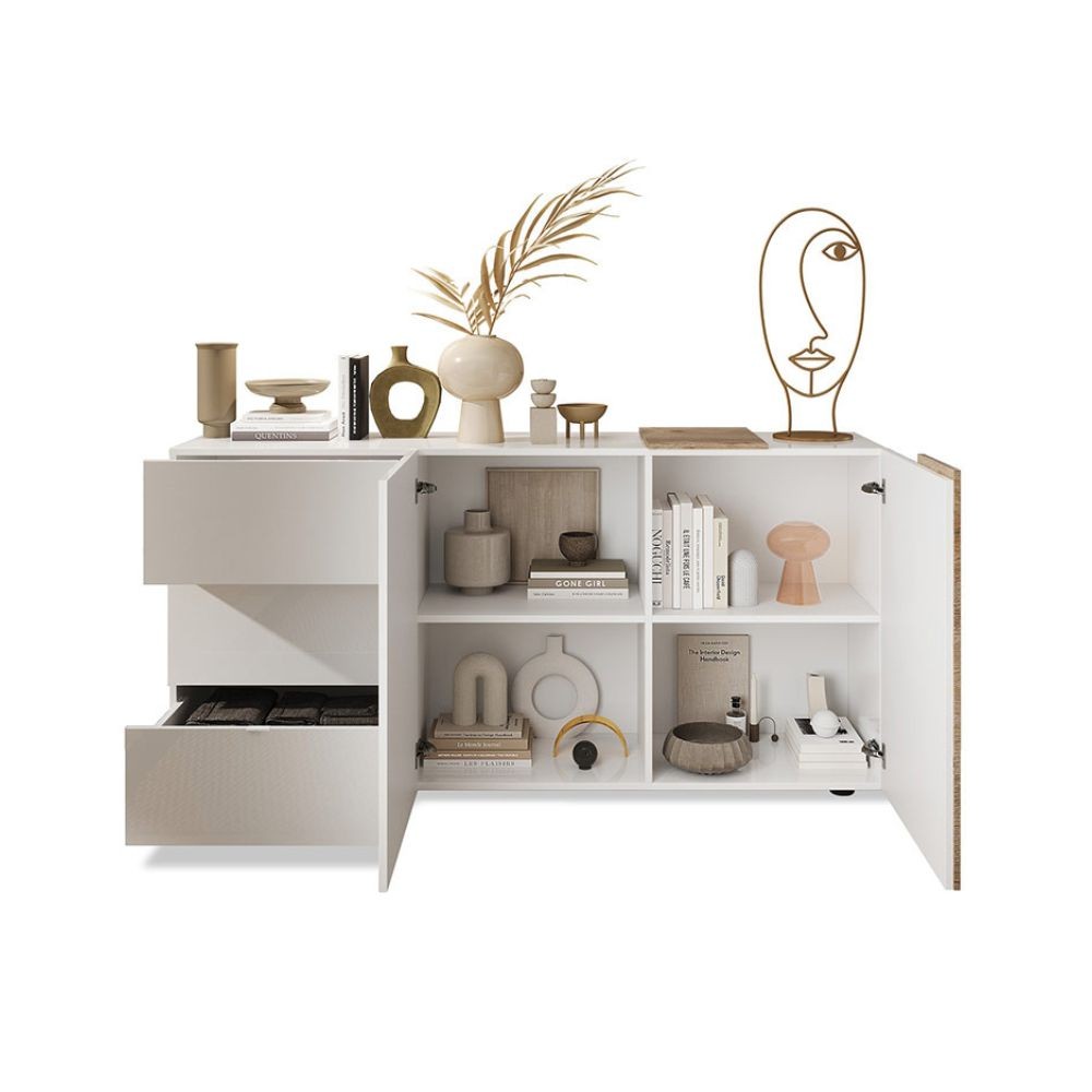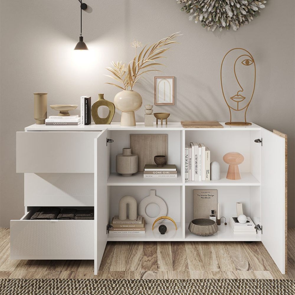 Madia Sabry 2 ante 3 cassetti bianco lucido rovere Kadiz