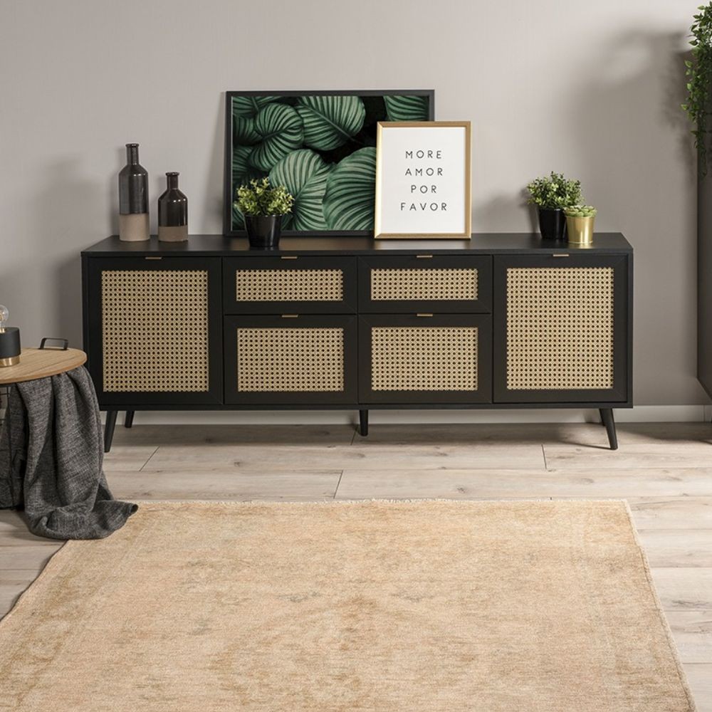 Porta TV Vienna56A 2 ante e vano a giorno nero con frontali effetto vimini Il prezzo originale era: 590 €.Il prezzo attuale è: 295 €.