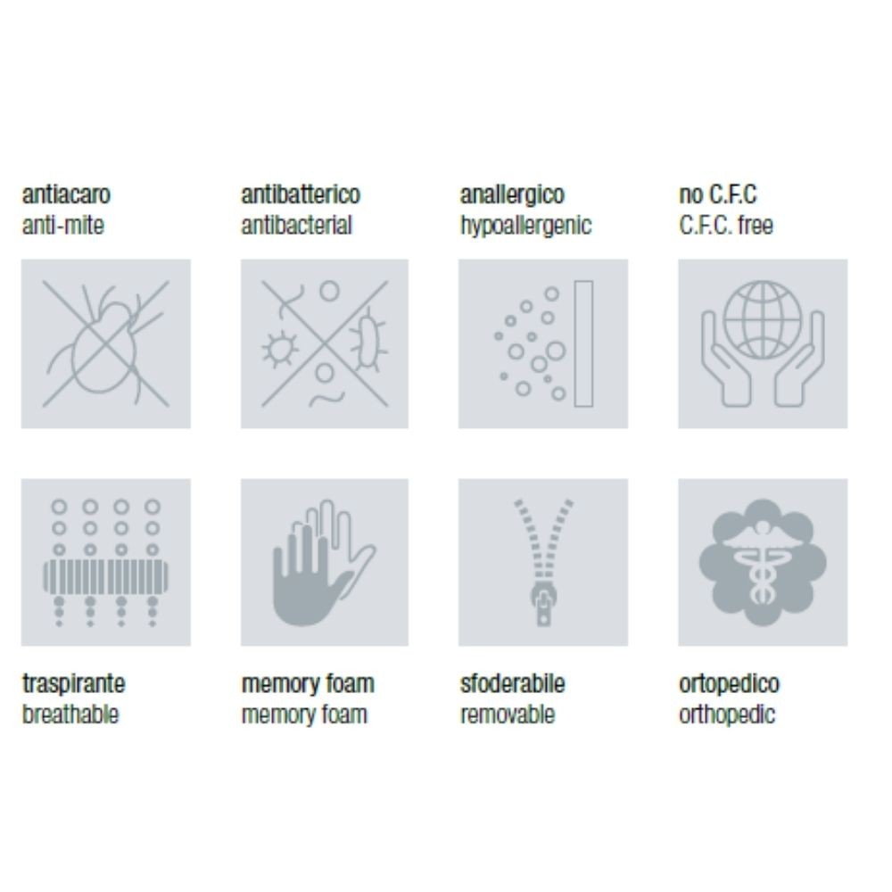 Speciale sagomatura della gomma per favorire il riposo notturno e la riduzione delle tensioni superficiali.