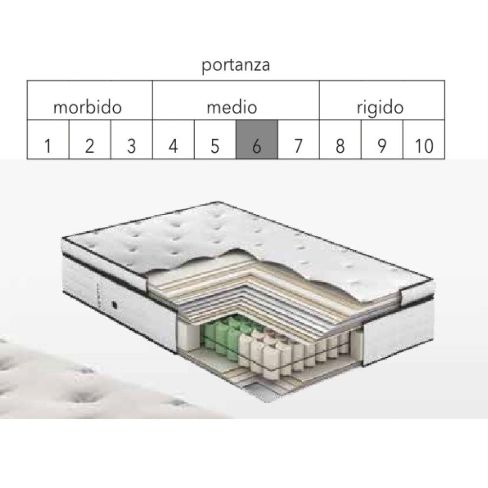 Materasso con molle insacchettate, top in memory foam 4 cm.