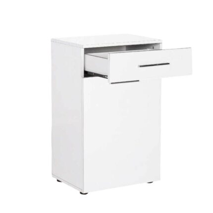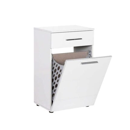 Mobile bagno moderno e capiente. Dotato di tre ante e un cassetto. Realizzato in melaminico. Il lavabo è in ceramica e i piedini cromati sono regolabili. Nel prezzo è incluso anche lo specchio con pensile.