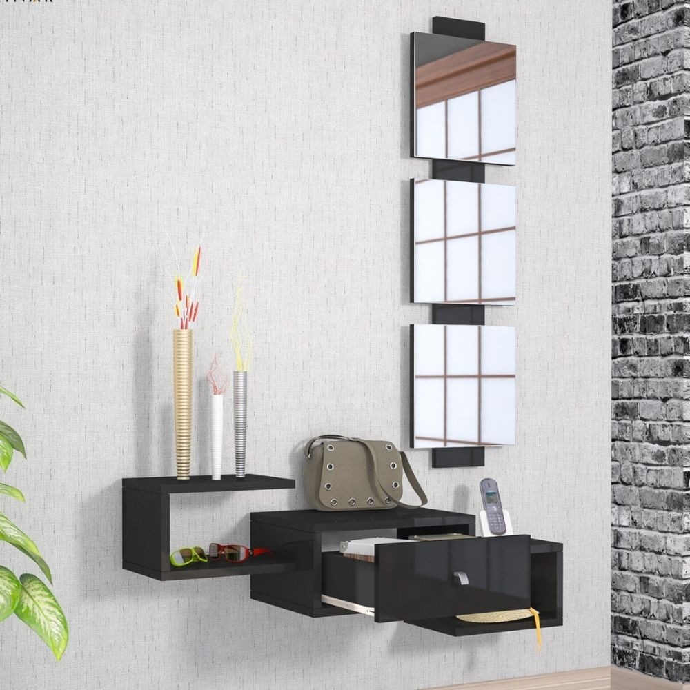 Mobile ingresso da parete Dorado nero lucido con specchio