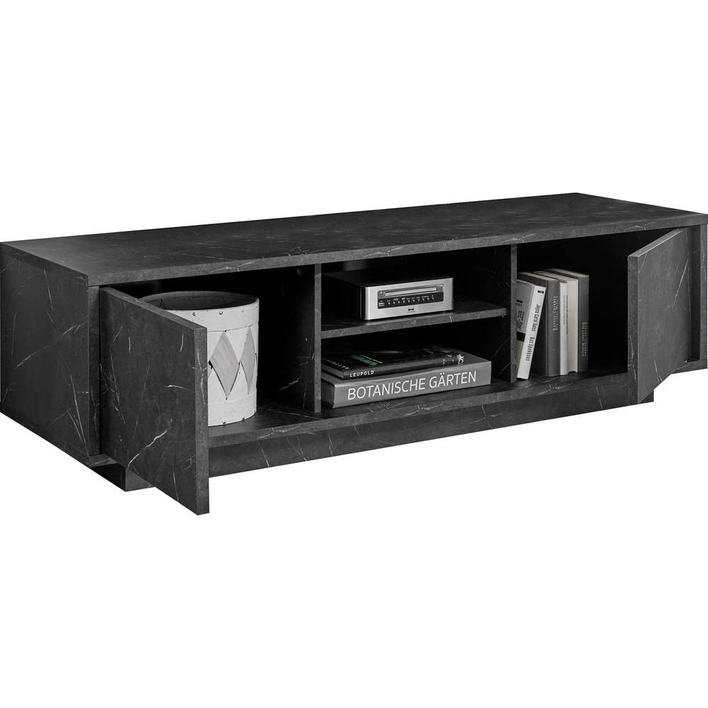 Porta TV 2 ante effetto marmo nero Rock 139x43x44h