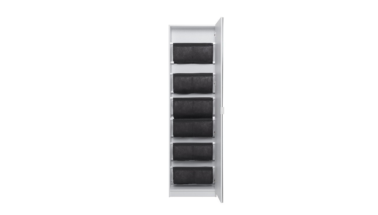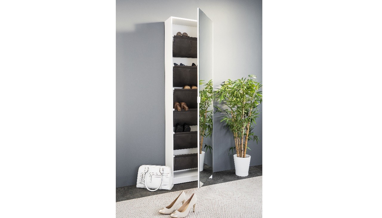 Scarpiera moderna dal design senza tempo, realizzata con materiali di alta qualità. Il corpo è in un bellissimo decoro bianco ,con frontale a specchio. I sei scomparti per scarpe in tessuto offrono spazio per circa dodici paia di scarpe. Il caos nel corridoio è un ricordo del passato, perché con questo cabinet è garantito l’ordine.