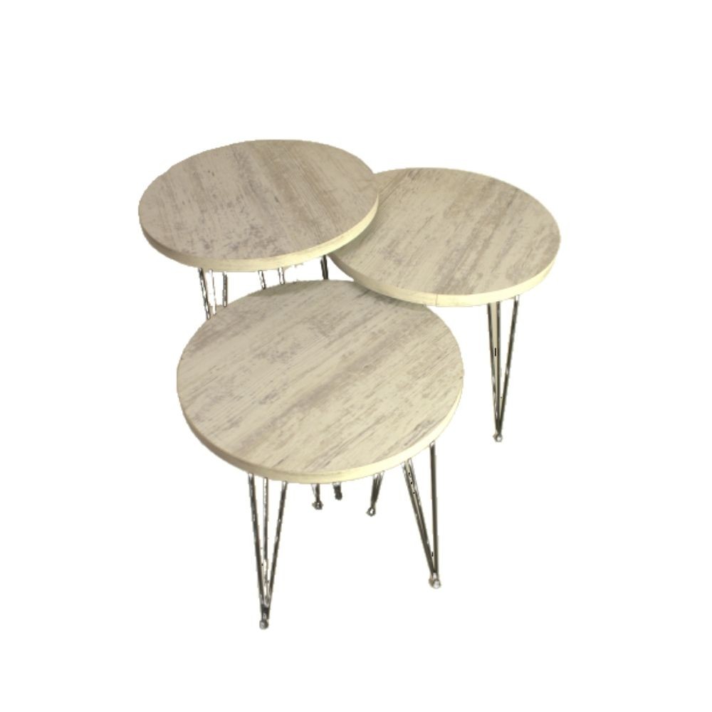 Elegante tris di tavolini da caffè effetto bianco consumato. Ideale per dare quel tocco di personalità ai tuoi ambienti grazie alle tre differenti dimensioni.