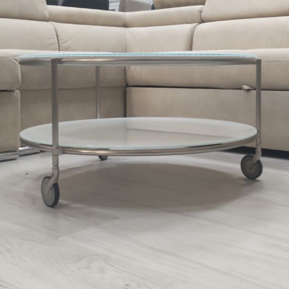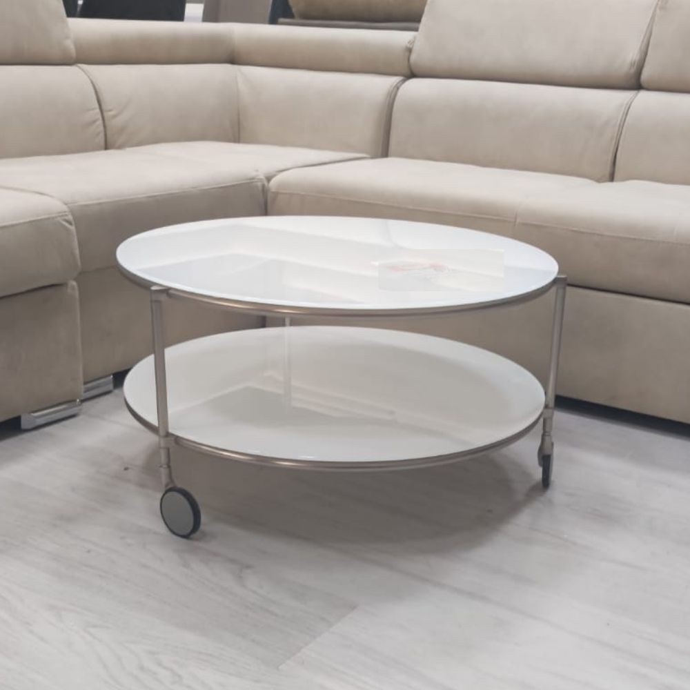 Tavolino da salotto Tavolotondo struttura ferro e ripiani vetro bianco