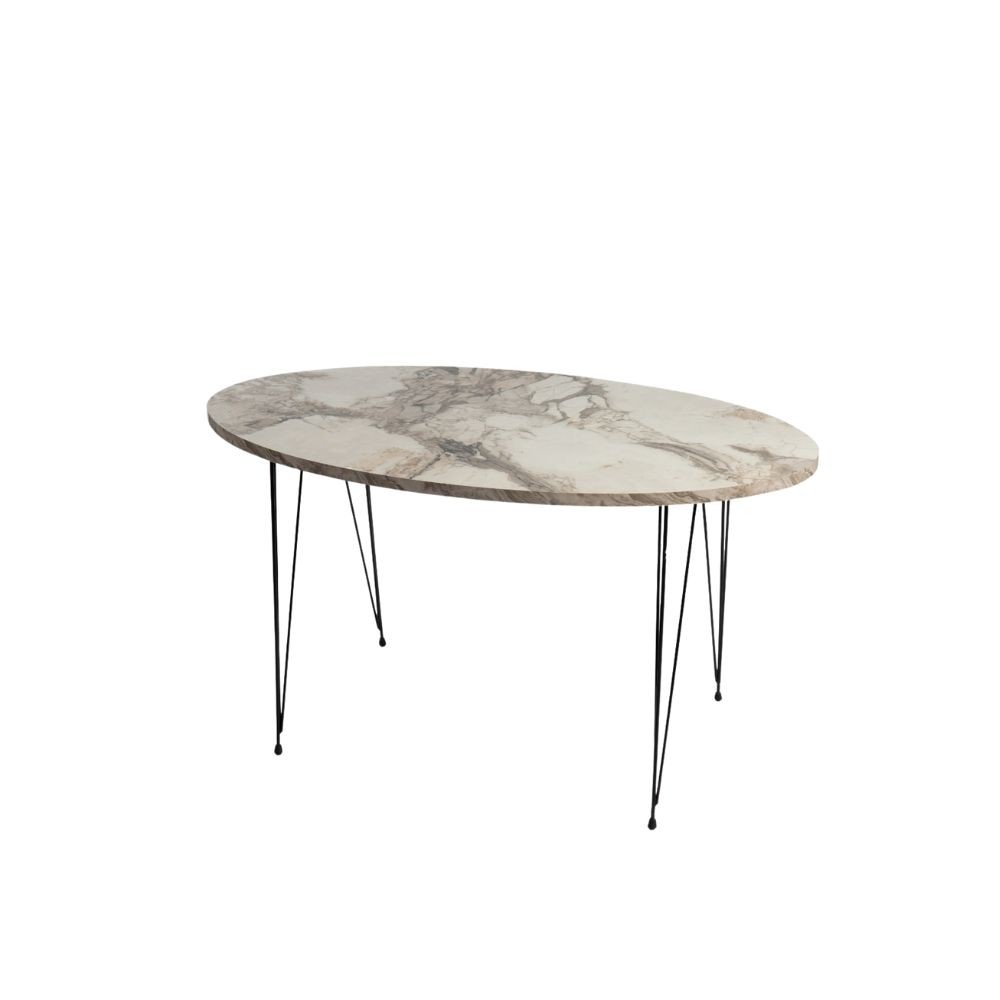 Elegante tavolo ovale da salotto effetto marmo bianco. Ideale per il tuo soggiorno. Utile per servire caffè, thè e piccoli aperitivi ai tuoi ospiti.