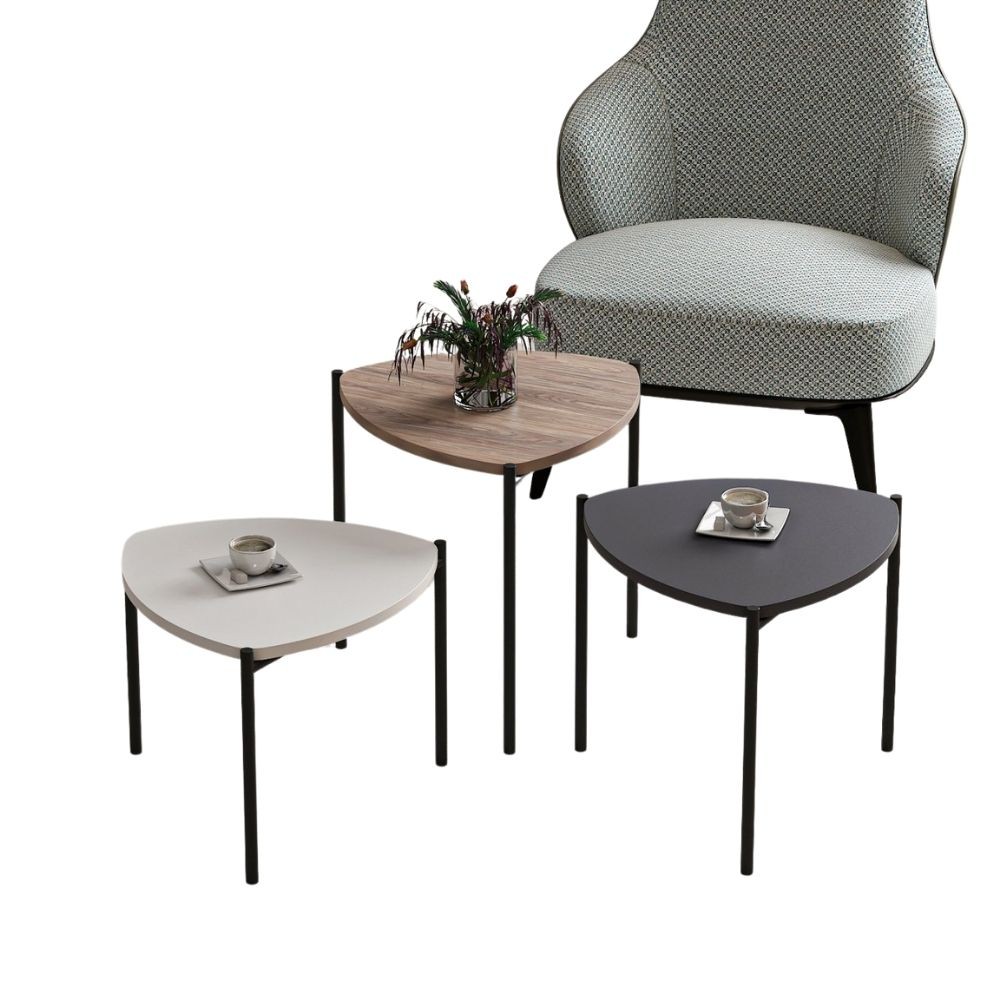 Tris tavolini da salotto bianco antracite noce Lenny