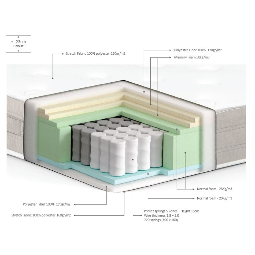 Cerio Materasso a molle matrimoniale 24 h